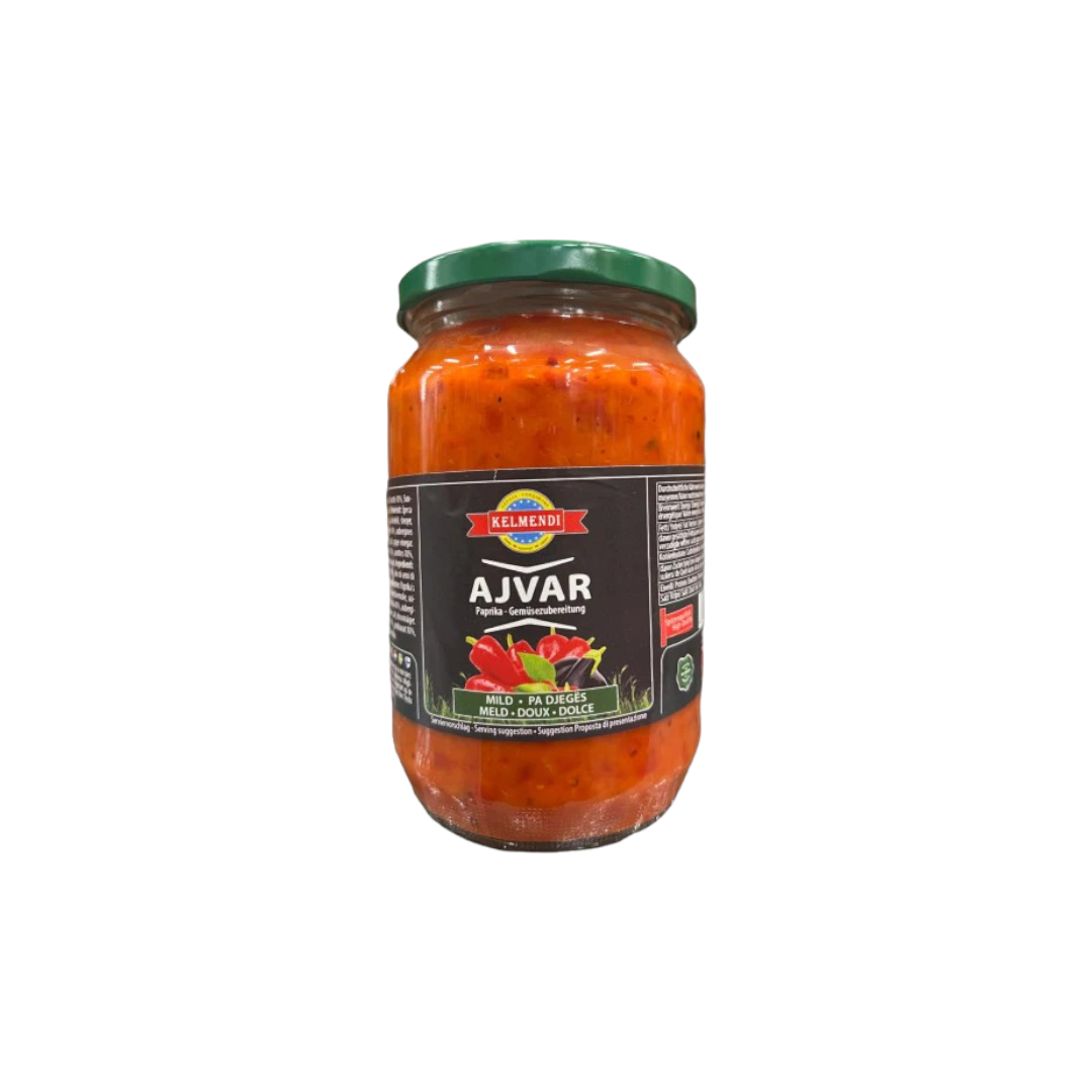Craquez pour les saveurs balkaniques avec l'AJVAR DOUX de KELMENDI. Principalement composé de poivrons, cette sauce végétale est un délice de légumes à partager à chaque repas !