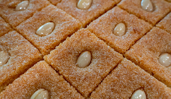 Ingredients: semolina, yogurt, orange blossom, rose water, sugar and yeast.